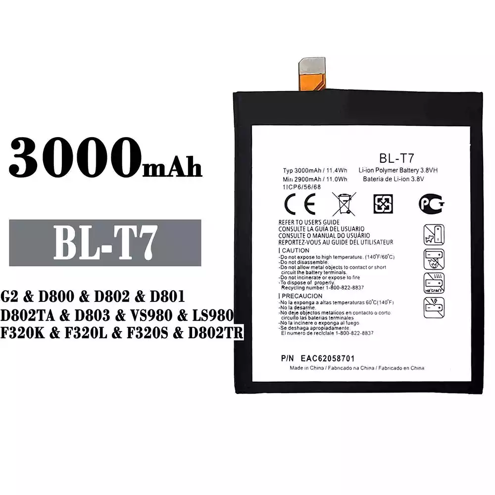 電池 BL-T7 適用於 LG G2 / D800 / D802 / D801 / D802TA / D803 / VS980 / LS980 / F320K / F320L / F320S / D802TR