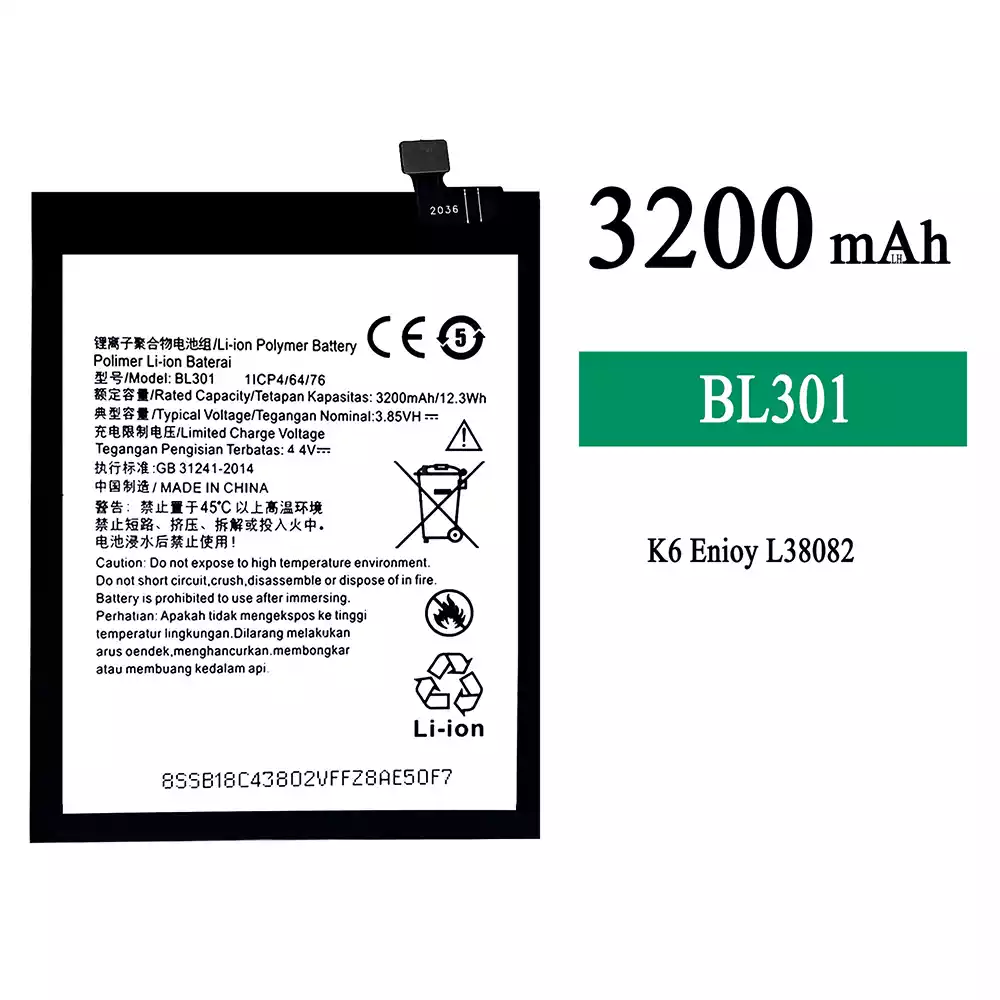 • 電池 BL301 適用於 Lenovo K6 Enjoy