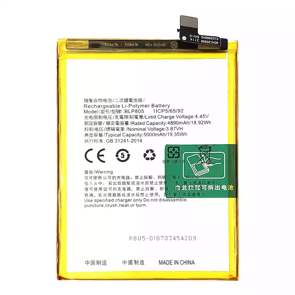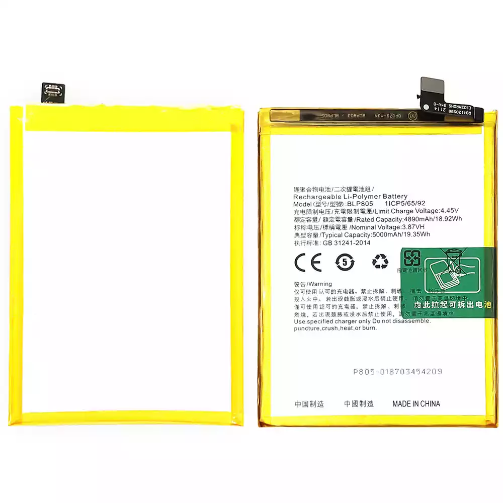電池 BLP805 適用於 OPPO 適用於 A16 / A16S / A32(2021) / A53 2020 / A54 / A54 4G / A74 5G / A53S / A54S / A33 2020 / A93 5G / A55(2020)