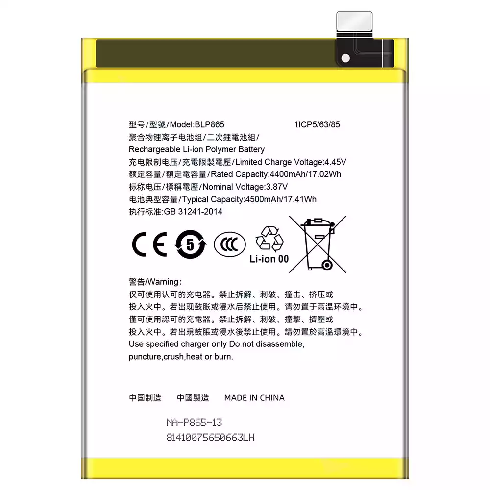 電池 BLP865 適用於 OPPO K9 Pro 5G/PEYM00