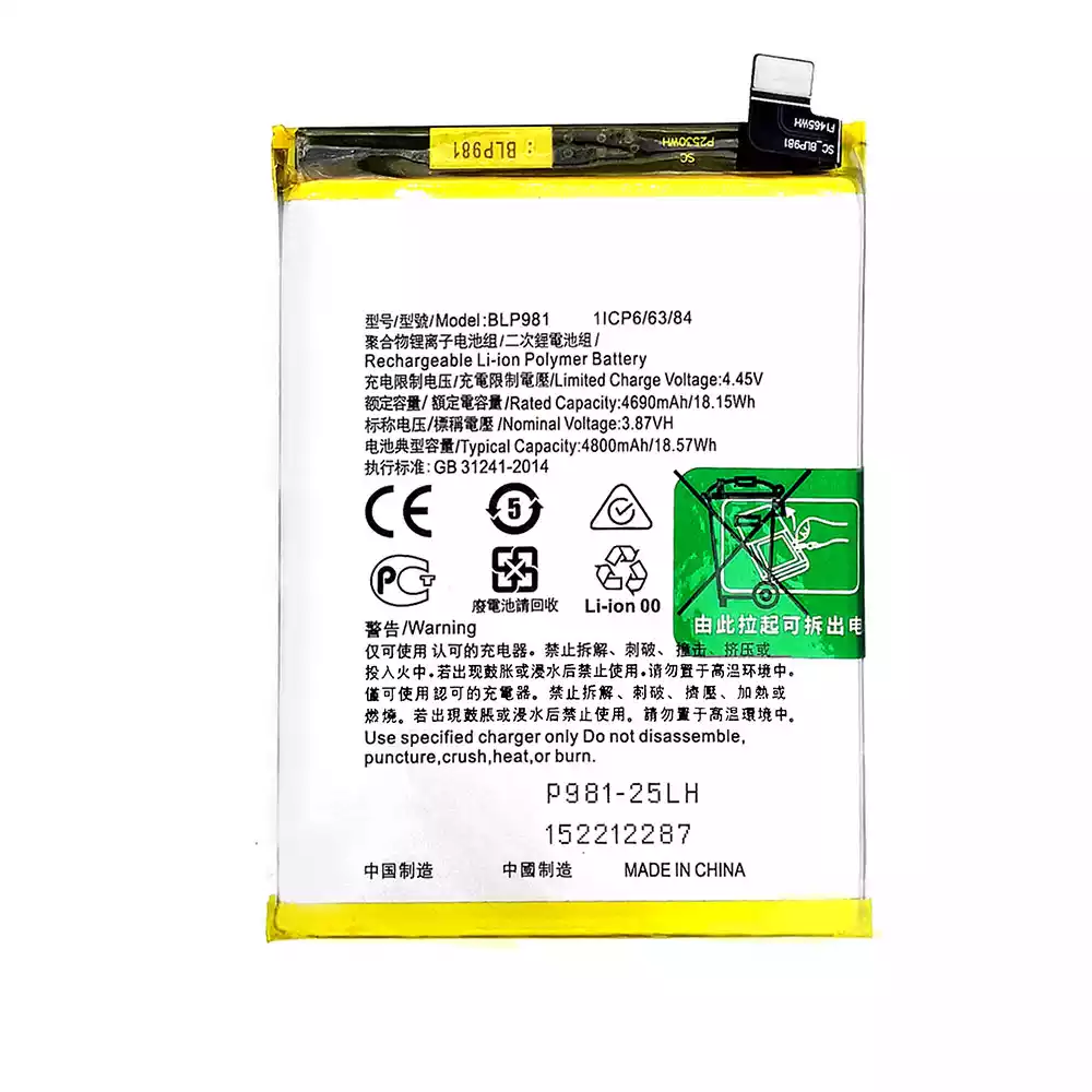 • 電池 BLP981 適用於 OPPO Reno 8T
