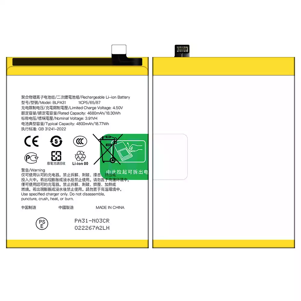 電池 BLPA31 適用於 OPPO Reno 11 (China)