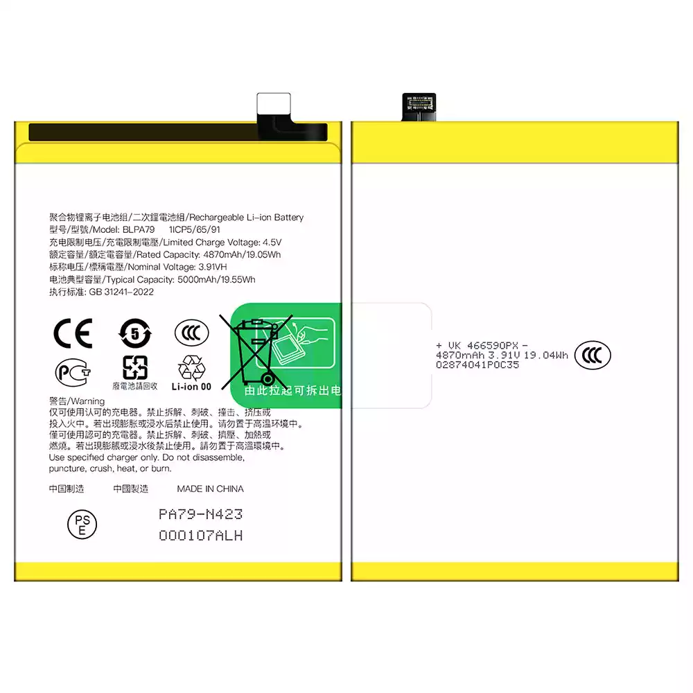 • 電池 BLPA79 適用於 OPPO Reno 12F 5G