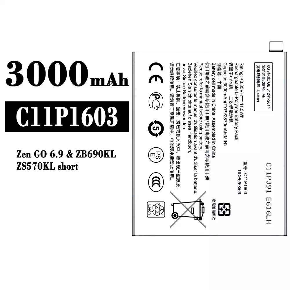 電池 C11P1603 適用於 Asus Zen GO 6.9 / ZB690KL / ZS570KL Short