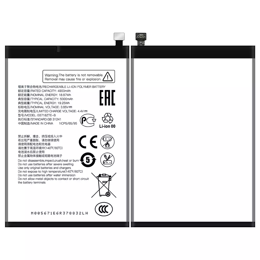 • 電池 E6718ZTE-B 適用於 ZTE BLADE A35/A55