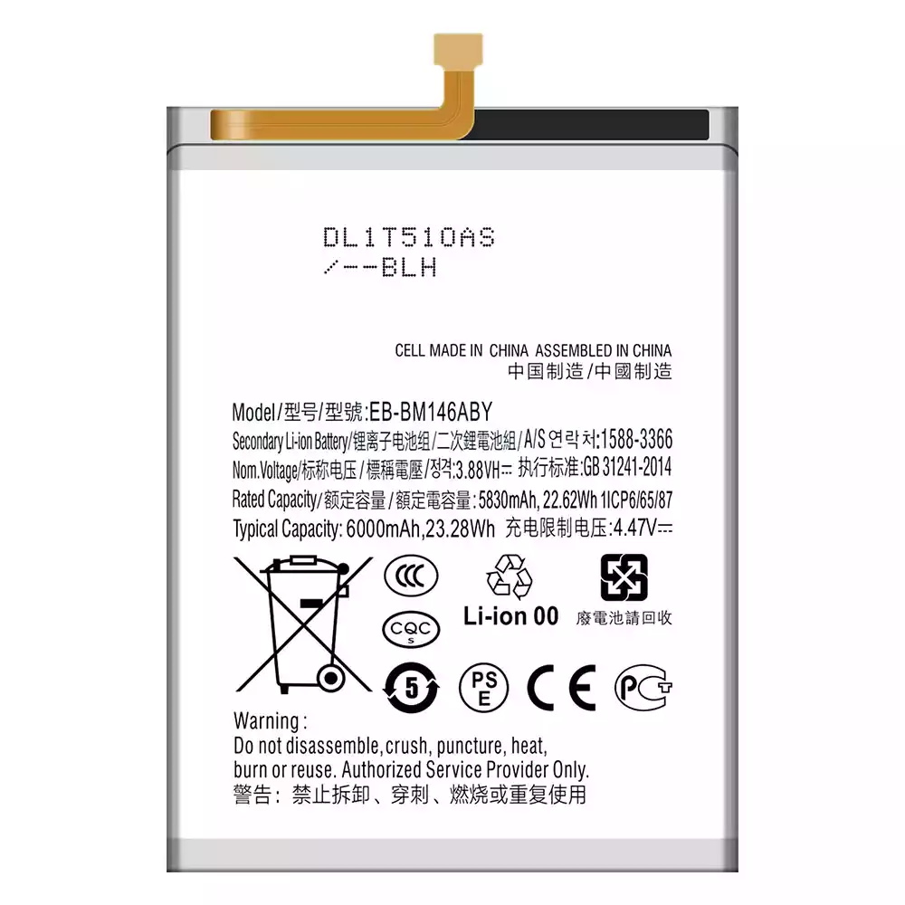 電池 EB-BM146ABY 適用於 Samsung Galaxy F54/M54 5G/M34 5G/F14 5G/F34 5G