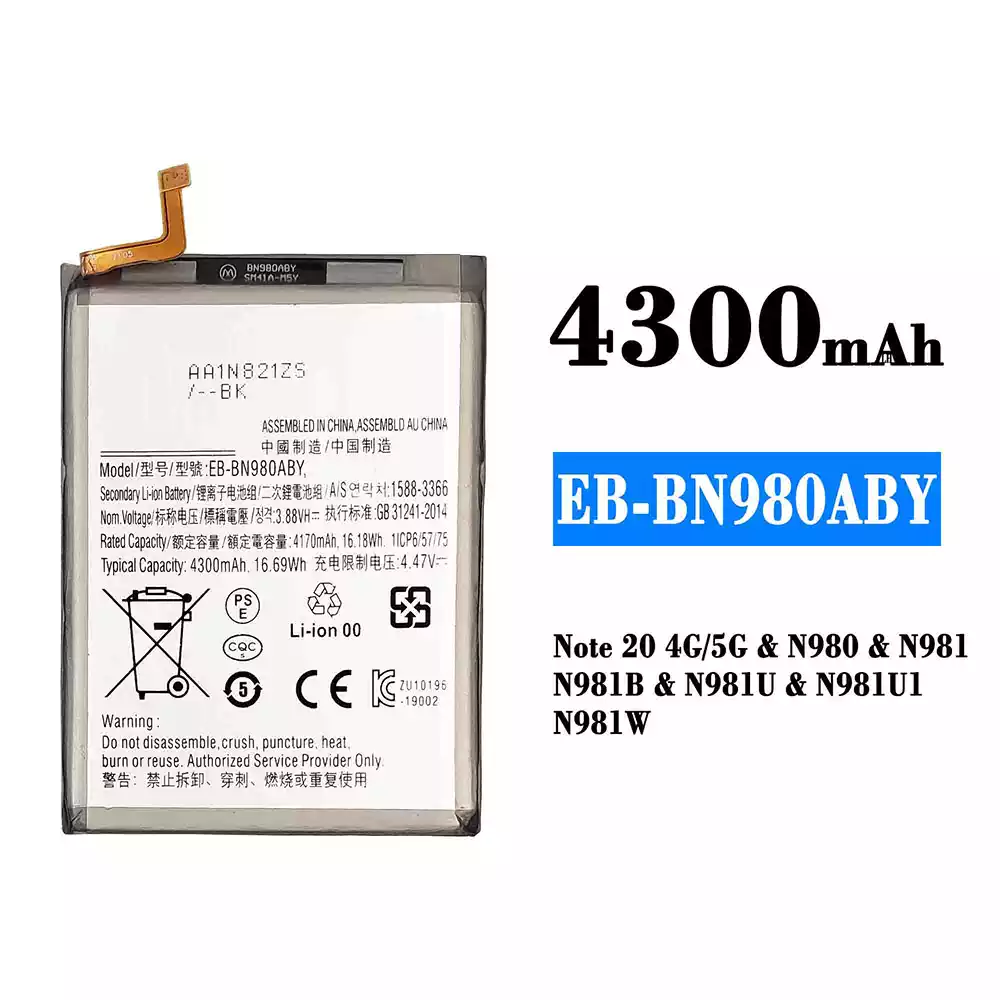 電池 EB-BN980ABY 適用於 Samsung Note 20 4G/Note 20 5G/N980/N981/N981B/N981U/N981U1/N981W