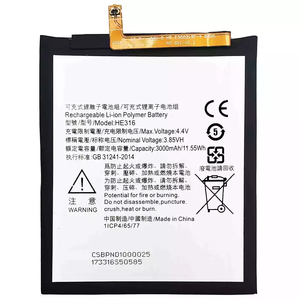 電池 HE316 適用於 Nokia 6 /TA-1021/TA-1033/TA-1000/TA-1003/TA-1025/TA-1039