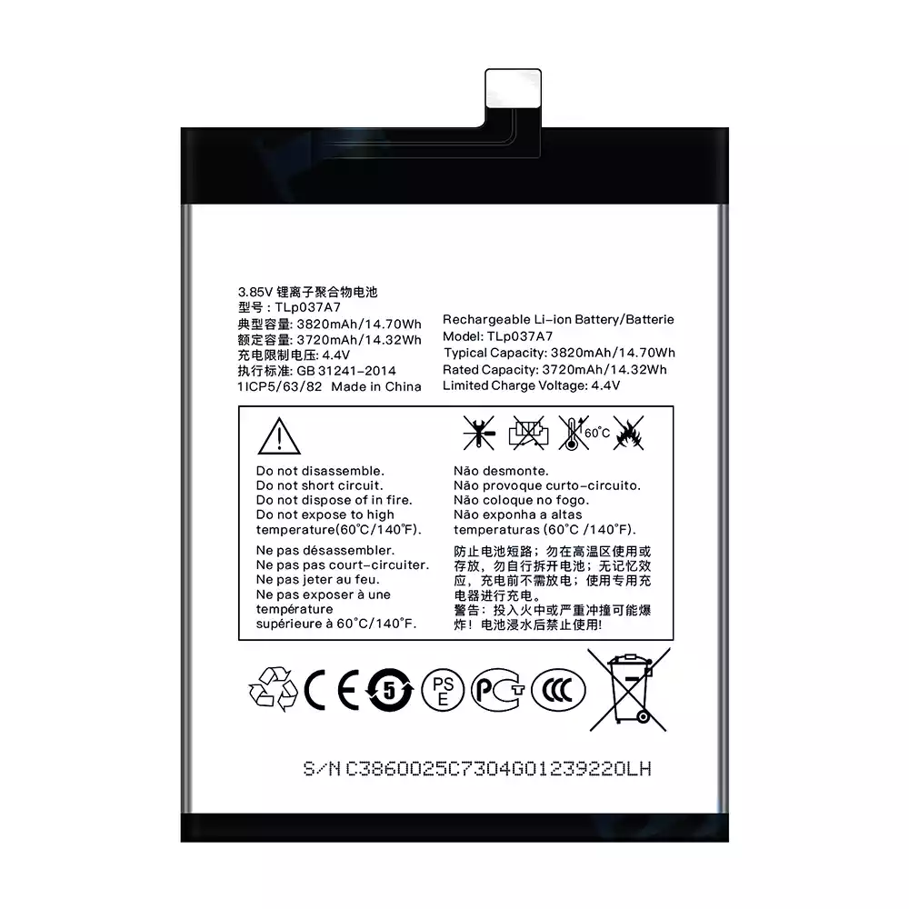 • 電池 TLP037A7 適用於 Alcatel TCL Plex/T780H
