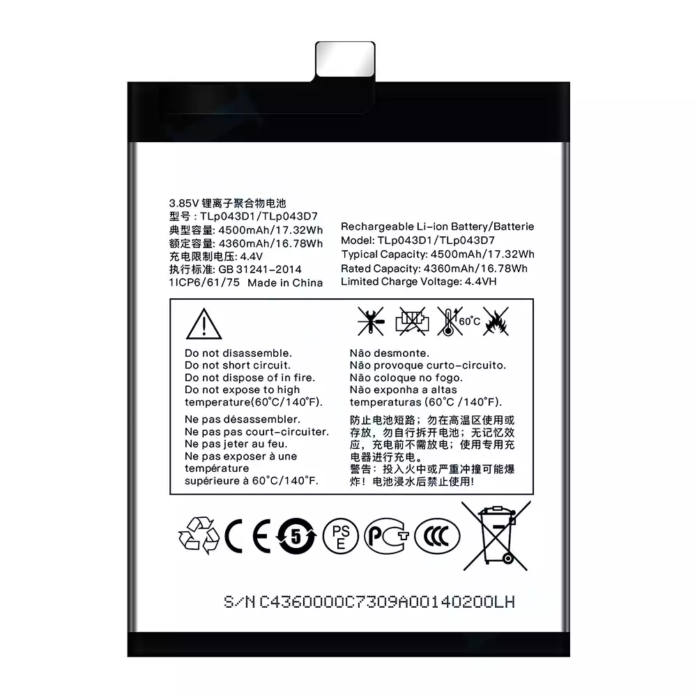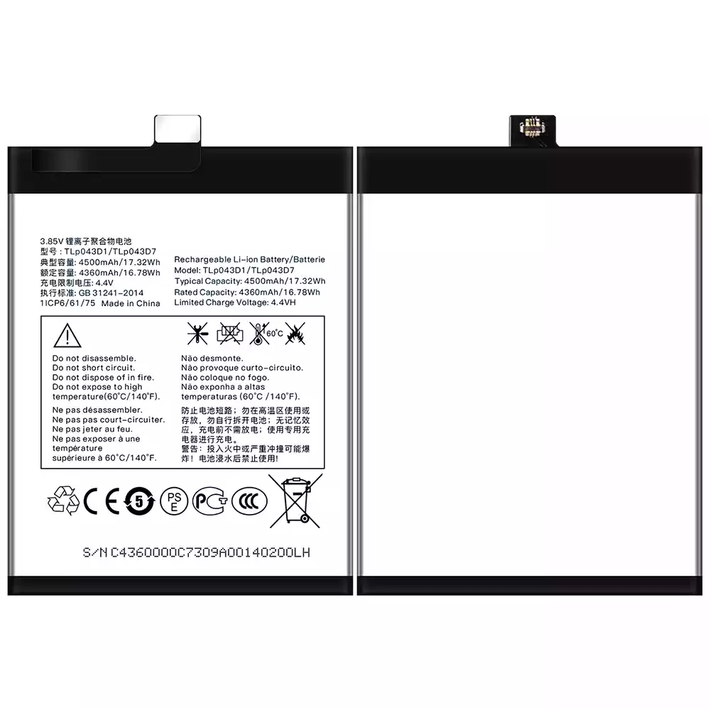 電池 TLP043D1/TLP043D7 適用於 Alcatel TCL 10 Plus/TCL 20 Plus/TCL 10 pro/TCL 20 pro
